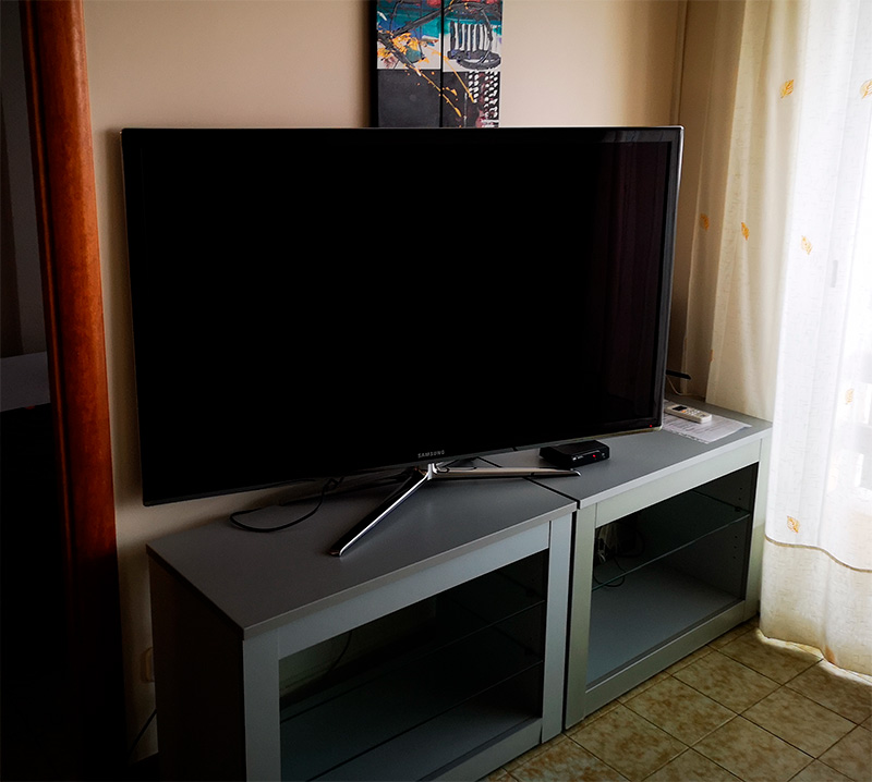 Звонит Дон Симон мне. Говорит: Экслер, хочешь новый большой телевизор, который уже не очень новый, но почти как новый? И 55 дюймов. Говорю - хочу 55 дюймов, мне на 40 дюймах и не разглядеть ничего. Сговорились о цене, забрал телевизор, поставил себе телевизор. Проработал он у меня что-то там года три и потом мне зажжужало взять телик с поддержкой 4К. Взял новый телевизор (очень доволен, скоро будет обзор). А старый-то куда девать?