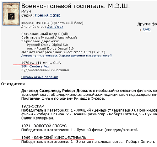Сейчас пишу рецензию на MASH Олтмана (именно художественный фильм, а не знаменитый сериал). Заметил на "Озоне" забавную штуку: