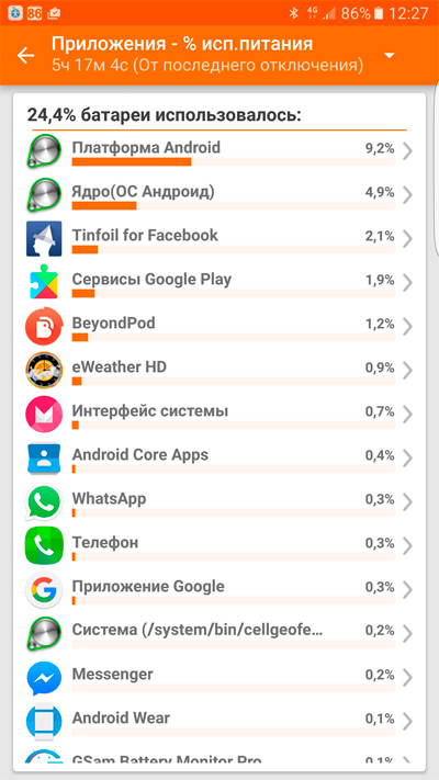 Начал отслеживать, что же там так активно потребляет - увидел, что фирменное приложение Facebook подкушивает 5,6, а то и 9 процентов, что уже явно много.