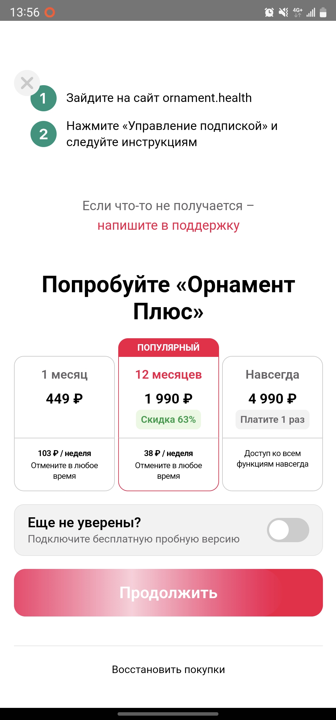 Потом в 2022 году они сделали премиум-подписку, а для бесплатного использования резко ограничили функциональность, что мне уже не подходило. Но там цена подписки была вполне разумной, и я бы заплатил, но в тот момент Google отрубил возможность оплаты для российских аккаунтов, а тот аккаунт, который у меня был зарегистрирован в приложении, и где хранились все мои данные, был зарегистрирован как российский.