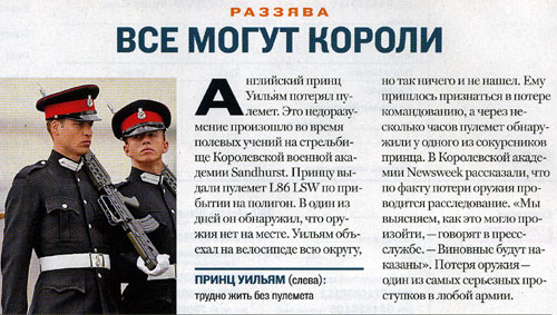 Это я прочел в Русском Newsweek. Тоже очень понравилось. Если бы он у нас послужил и был бы не принцем 😄 У нас за потерю любой части автомата уже уголовная ответственность. Я когда служил, так при походе на стрельбы и прочее с автоматом был как единое целое. А принцу похоже просто лень было таскать такую тяжесть. Он слугу попросил потаскать 😄