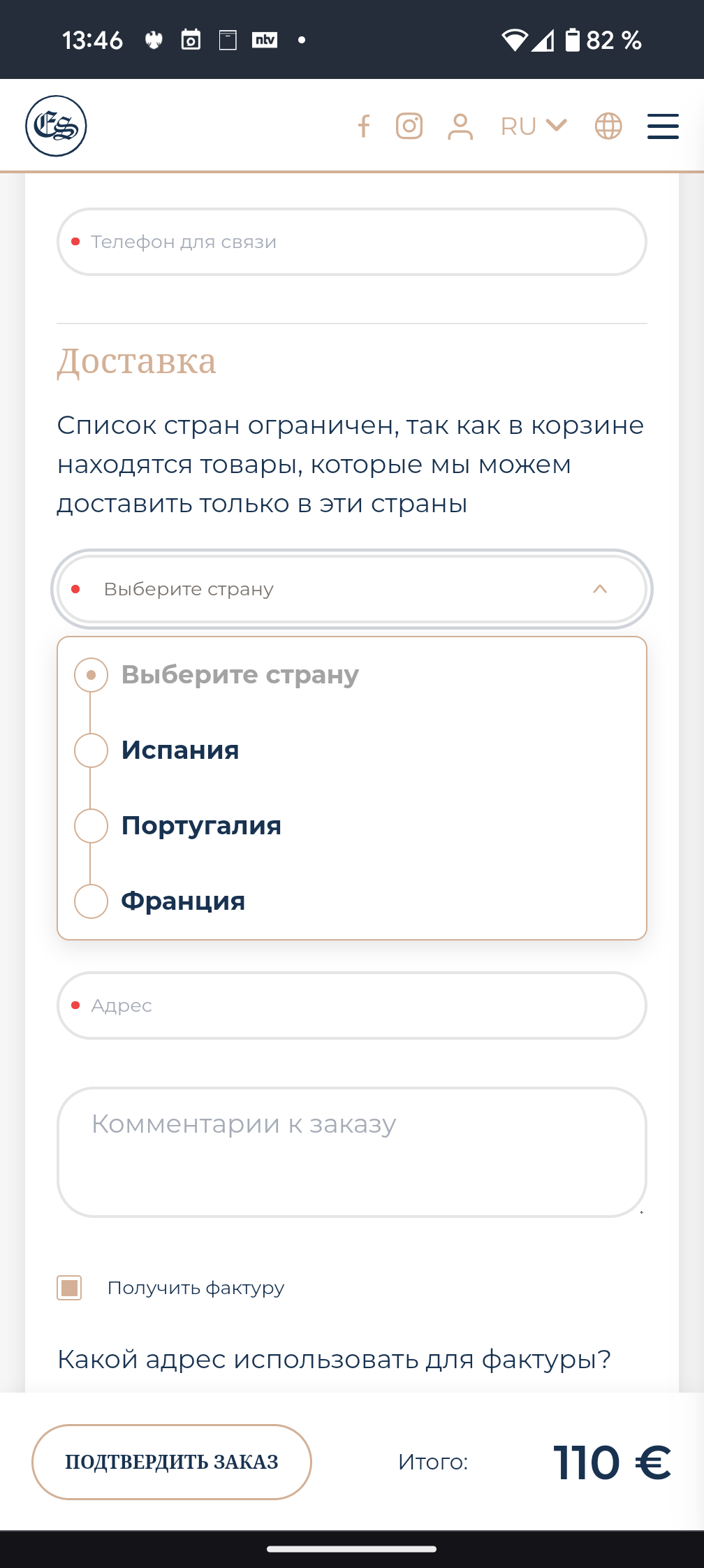 а если сложить этих осетров в корзину и там попробовать выбрать страну доставки, то только 3 вышеуказанные страны. И вот с такой припиской "The list of countries is limited as there are items in the cart that we can only deliver to these countries" Вы просто писатель и буквы любите? 😄