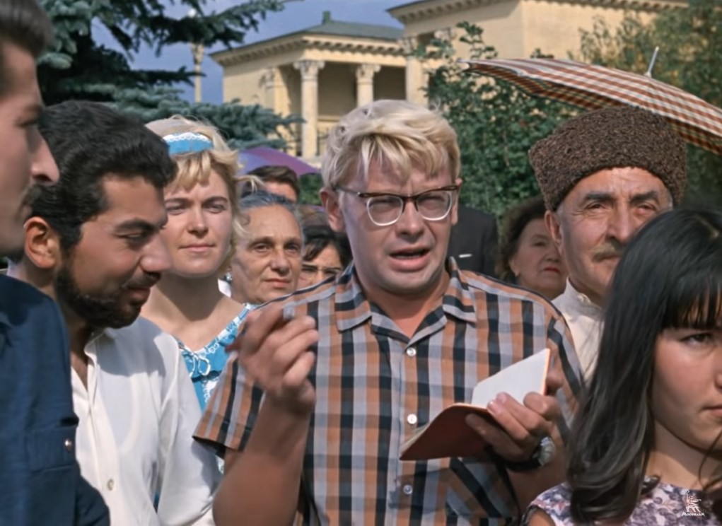 Дома одел новый кремплиновый костюм и нейлоновую рубашку. Вызвал волгу. Но жена опаздывала к прикмахеру, а дочка в школу. Волгу отдал им, а сам поехал на автобусе. Опоздал на селекторное совещание на 5 минут, получил выговор.