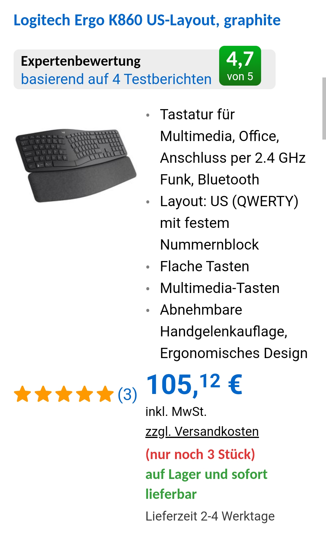 Я в итоге заплатил с доставкой €140, но я бы и 500 за нее заплатил, учитывая то, сколько часов в день она задействована и насколько меня тормозит неподходящая клавиатура.