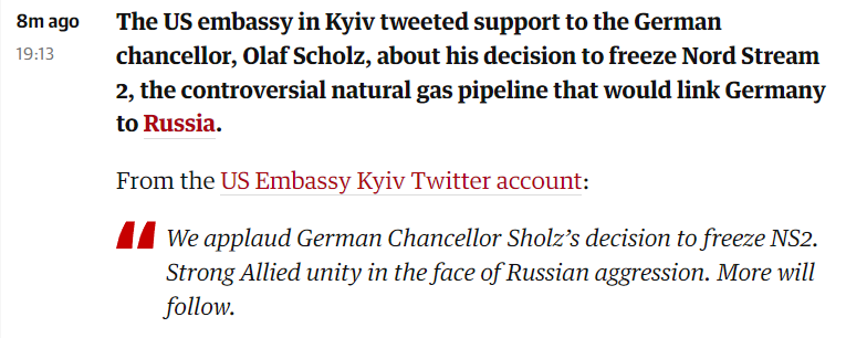 Вот и я о том же. Все пытаются нагадить Путину. Интересы Украины и тем более простых людей, что российских, что украинских вообще никого не волнует. Собственная безопасность Европу тоже с некоторых пор мало занимает. Казалось после ковидобесия ничего уже не должно удивлять. Но это удивляет.