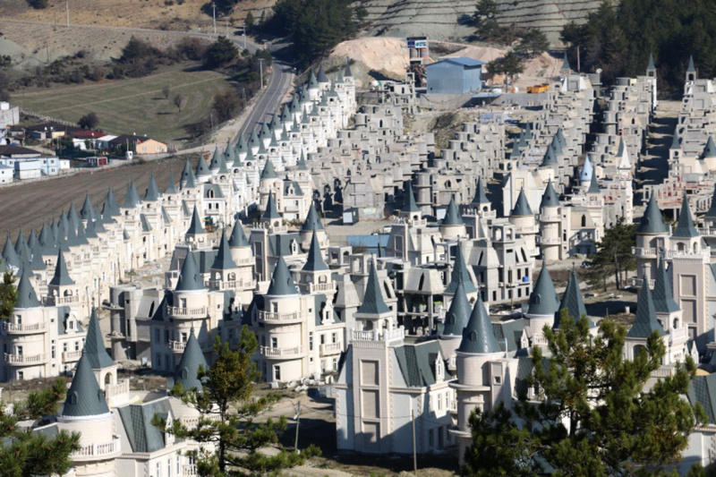 Поселок назвали Бурдж Аль Бабас (понятно, на каких именно покупателей они рассчитаны), он расположен посреди живописных гор провинции Болу и там планировалось возвести аж 700 замков во французском стиле для богатых арабов  Катара, Бахрейна, Кувейта, Саудовской Аравии и Объединенных Арабских Эмиратов. Ну, точнее, конечно, это были не замки, а очень нелепо выглядящие виллы в образе замков общей площадью 225 квадратных метров, стоимостью несколько сотен тысяч евро.