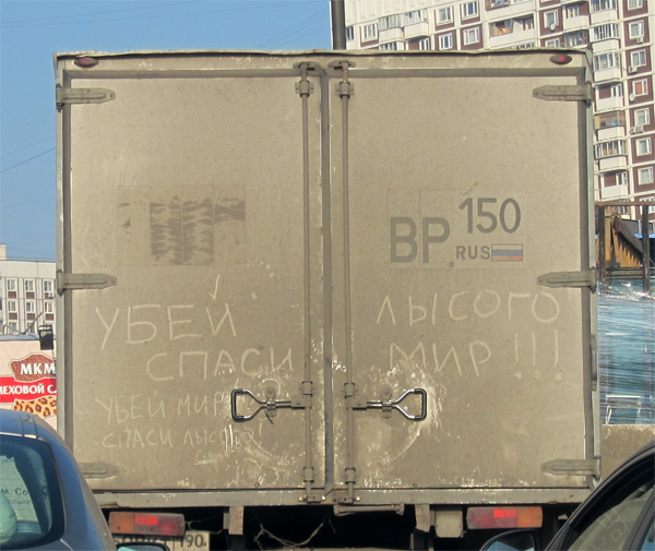 Внизу там тоже неплохо: "Убей мир, спаси лысого".