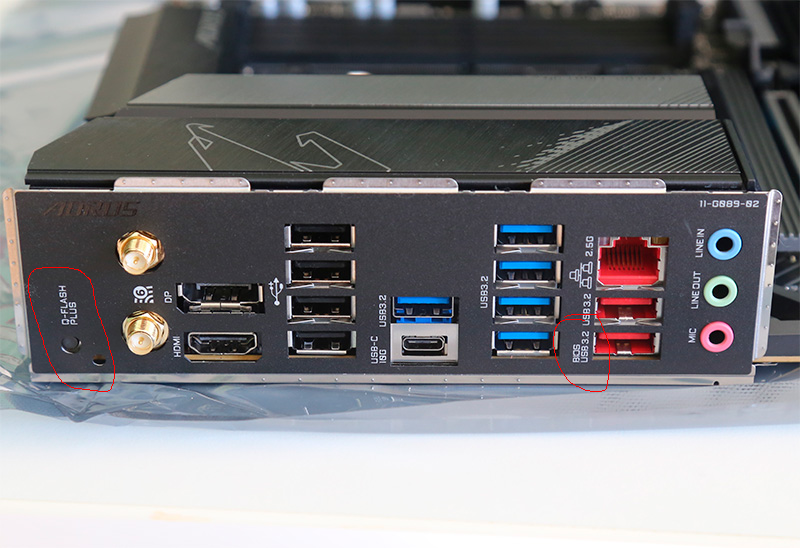 Q-Flash есть, кнопка около антенных разъёмов, УСБ разъём тоже подписан.