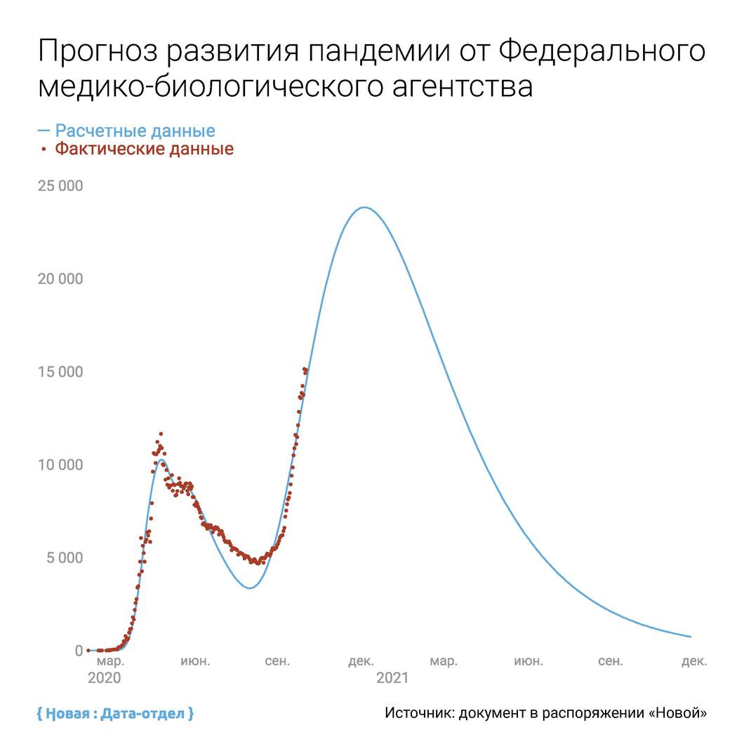 В распоряжении «Новой» оказалась модель распространения коронавируса в России, составленная Центром мониторинга биологических рисков Федерального медико-биологического агентства (ФМБА).