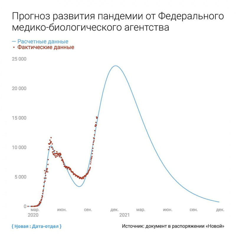 Эти расчеты показывают, что пик заболеваемости придется на середину декабря 2020 года.