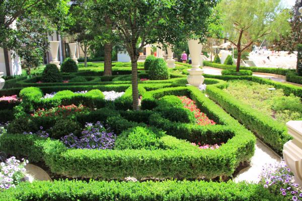 Небольшой садик во внутреннем дворике Encore: кусты, огородик, ежевичка, редисочка.