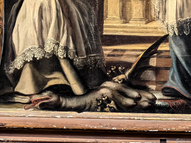 Поверженный дракон на картине имеет то ли четыре груди, то ли четыре яичка