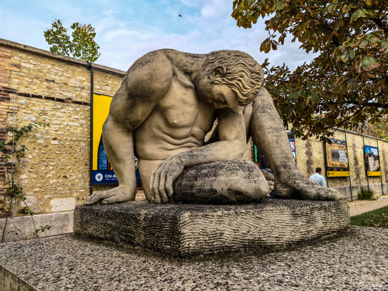 Интересно, почему павший голый, и где он в то голодное время такую бицуху наел. Больше похож на утомившегося Атланта.