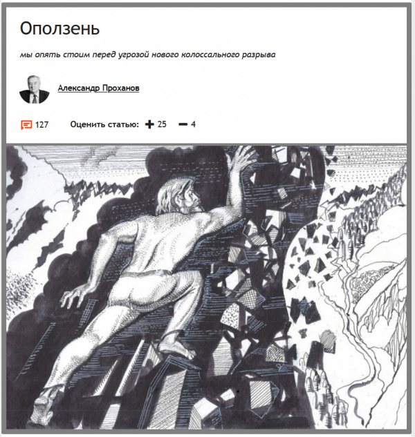У меня Проханов вызывает исключительно брезгливость, а его излияния будто под наркотой написаны (ну не может вменяемый человек писать подобную чушь да ещё и с таким пафосом).