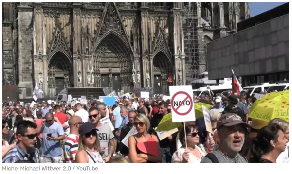 А пропаганда действует на людей одинаково, вне зависимости от их пола, религии, возраста, страны проживания, образования и т.д. То, что в Германии люди, потребляющие российскую пропаганду вышли на такой митинг, это нисколько не удивительно. Вон в Праге тоже самое.