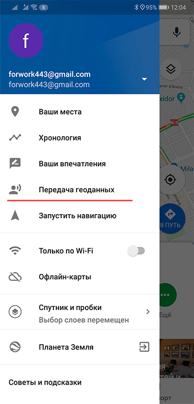 Вызываете меню в Google Maps (пиктограмма в левом верхнем углу).