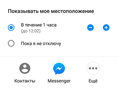 Определяете, в течение какого времени показывать местоположение. Кстати, раньше режим "Пока я не отключу" работал всего три дня, потом автоматом отключалось, но, видимо, было много протестов пользователей и это, слава богу, поменяли - теперь пользователь сам решает, когда отключать и отключать ли вообще. У меня, например, с женой взаимное отслеживание местоположений включено постоянно - это очень удобно.