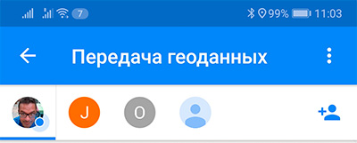 Чтобы в любой момент увидеть, кто вас отслеживает и кого вы можете отслеживать, нужно зайти в "Передачу геоданных", там сверху - список всех соответствующих контактов. Если нужно посмотреть, где контакт находится в данный момент (его и на карте показывают, но, может, он где-то далеко) - просто щелкнуть по иконке контакта.