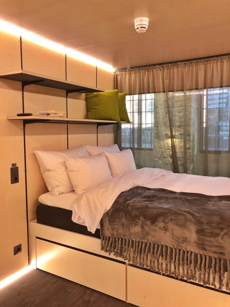 В контейнером XоCтеле стояли в Англии в Корнволле, было тесновато, примерно как в каюте.
