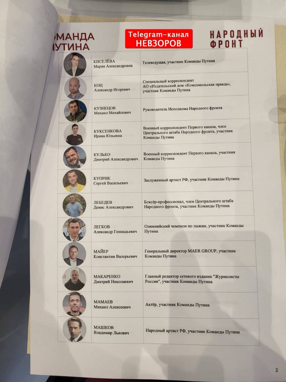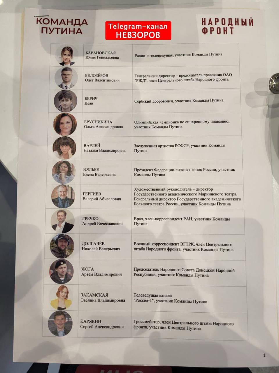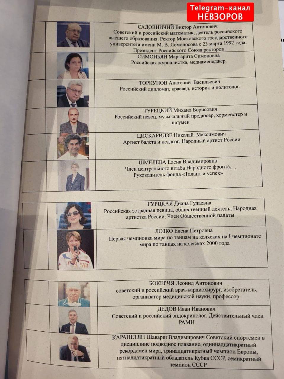 Вот вам списки команды Путина на выборах. По этому поводу Невзоров написал: