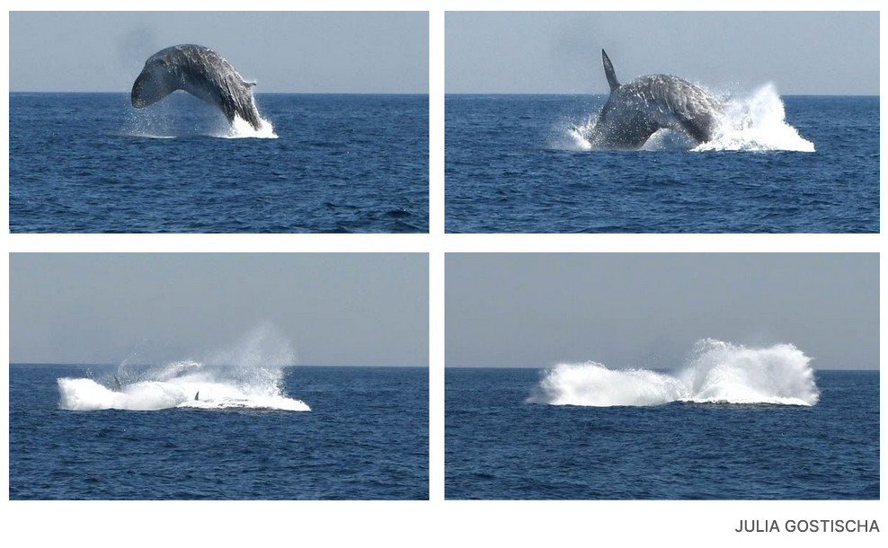 На фото не могу увидеть сальто, как я его всегда понимал, т.е. 360 гр. прыжок. Вроде как просто выпрыгивание по дуге, так ещё горбачи выпрыгивают.Или у китов это и называют сальто?Я без подколок всяких, если что, а действительно не знаю.
