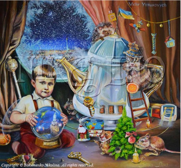 Хрен бы с ним, с Януковичем. Но у него за спиной - амператорский скипетр. Слишком печально и в точку. Да и это ладно. Беспокоит другое: что символизирует ёжик (!) на куполе Верховной Рады, которая в свою очередь, изображена в виде чайника? Это, я вам скажу, посильнее старика Сальвадора Дали!