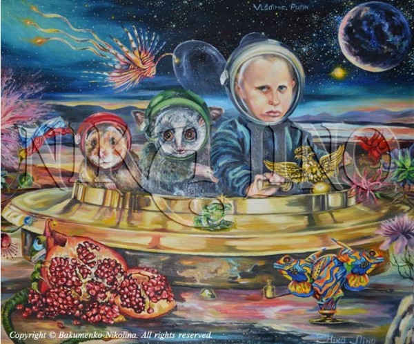Дама, конечно, настолько умная, что догадалась подписать свои творения. А то никто бы не догадался, что речь идёт об упомянутых персонажах.