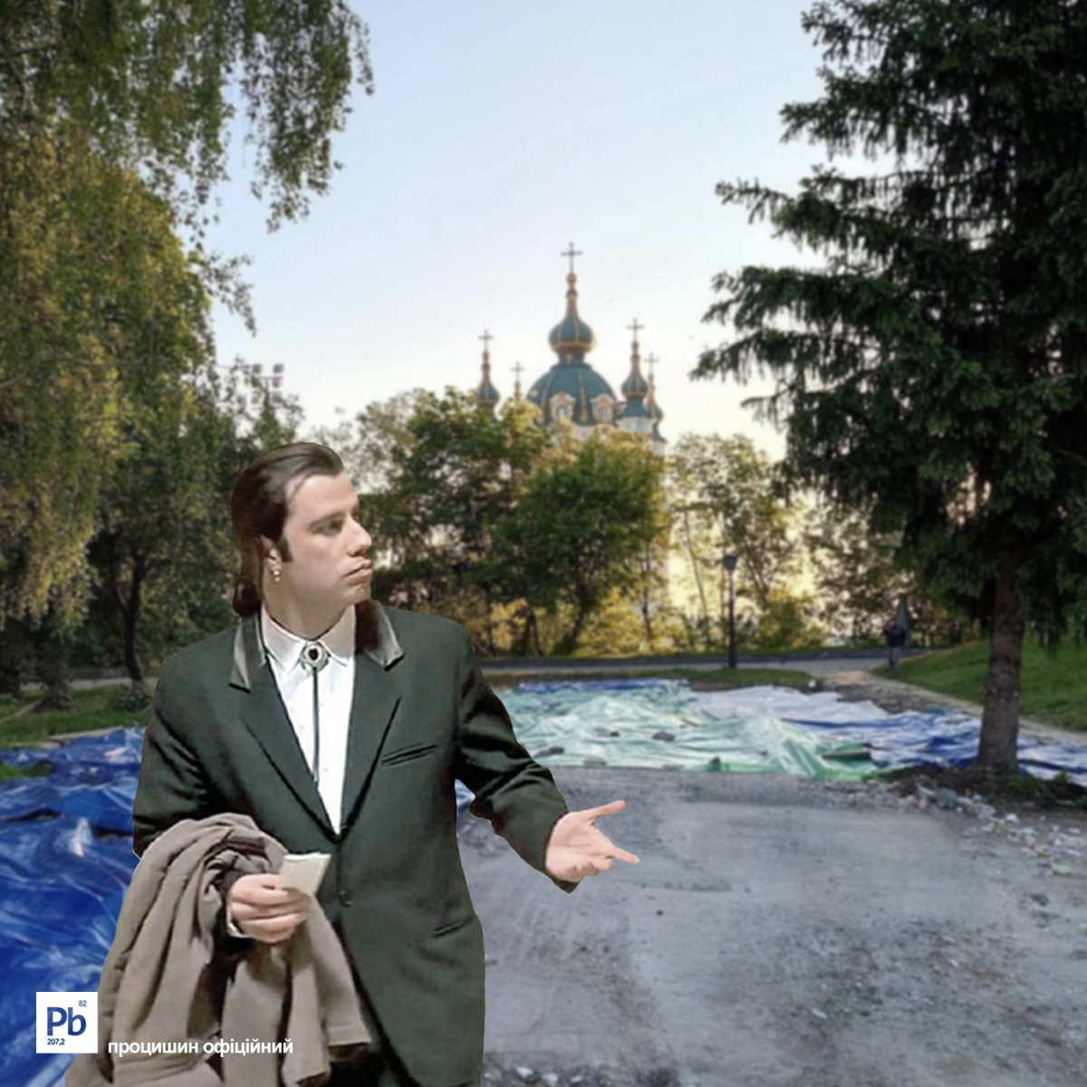 Кто не знает, в 100 метрах находиься место, где был Бабин торжок -- рыночная и центральная площадь древнего Киева. Владими, до принятия христианства, поставил там 12 истуканов в честь 12 богов древних словян. Особо известен истукан Перуна с деревянным телом, медной грудью, середряной головой и золотыми усами, сброшенный в Днепр при крещении Руси.