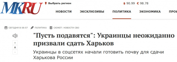 И как вы думаете, что там написано в заметке и какие комментарии приведены в знак того, что "украинцы в соцсетях начали готовить почву для сдачи"?
