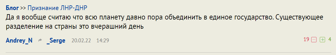 Upd: Новостная лента ликования очень недорогих россиян по поводу признания орлом нашим доном Рэбой (конечно же, по требованию народа, доярок, трактористов и его боевых клоунов-советников) лугандонов. Ничего хорошего в этом, конечно же, нет, но мы от этого персонажа ничего хорошего и не ожидали, правильно?