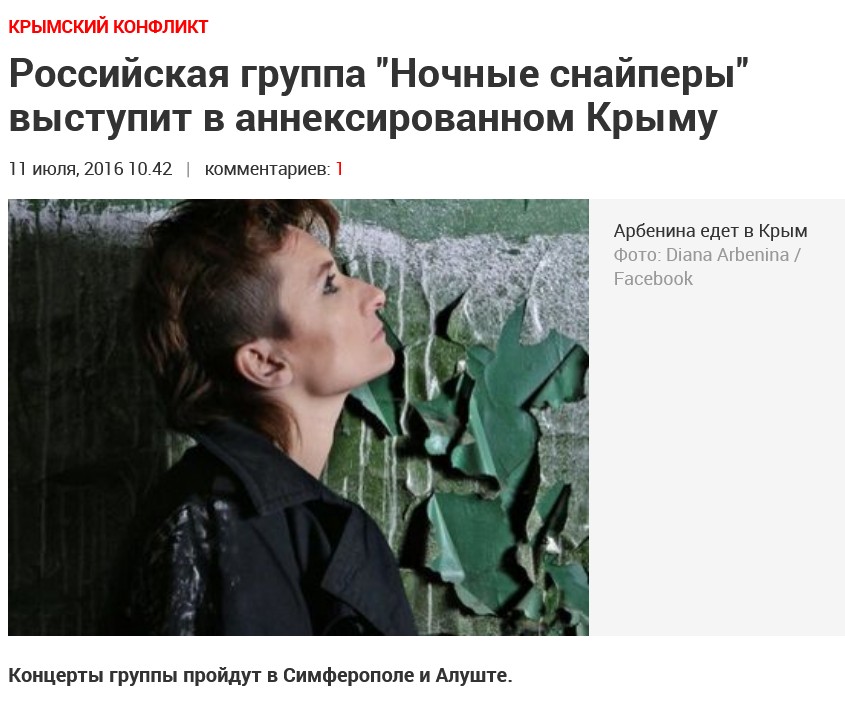 Это та Арбенина которая в анексированном Крыму на концертах выступает вместе со шнуром?