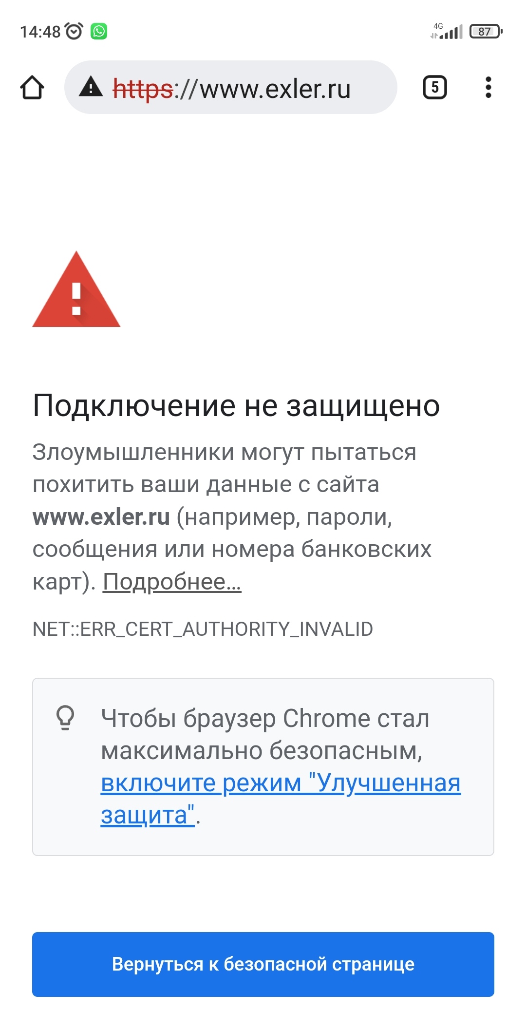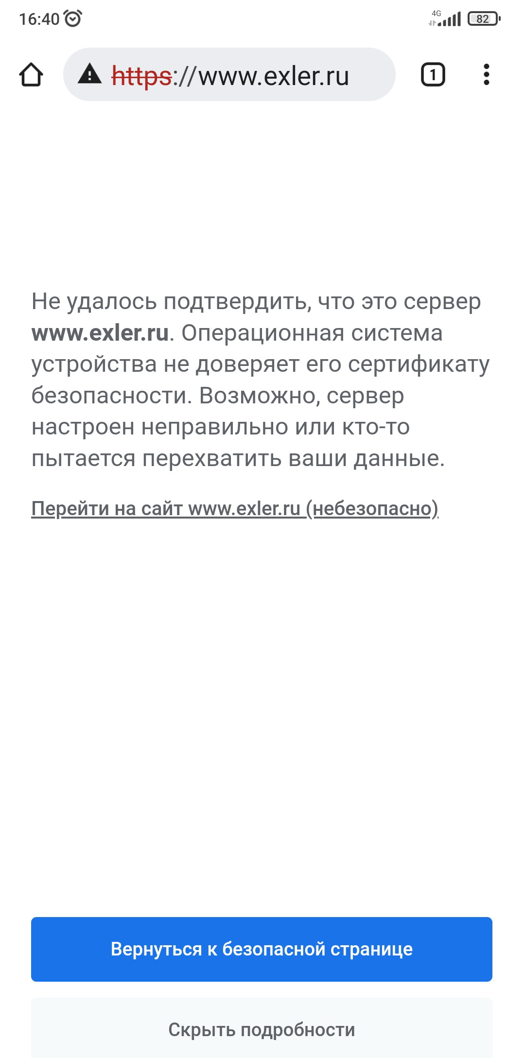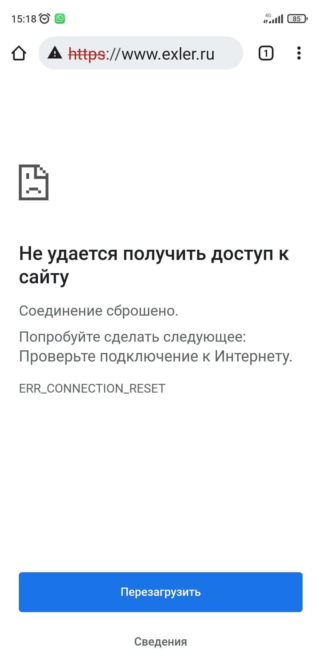 P/s. Кажется поборол: вбил в поисковой строке вручную http(без буквы S)://exler.ru и открылось нормально. Спросило че то про куки, я согласился и ̶и̶ ̶с̶ ̶к̶а̶р̶т̶ы̶ ̶с̶н̶я̶л̶о̶с̶ь̶ ̶1̶0̶0̶ ̶б̶а̶к̶с̶о̶в̶ теперь без проблем открывается.