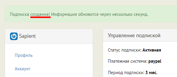 В личном кабинете вижу "Оплата подписки" и "Управление подпиской".