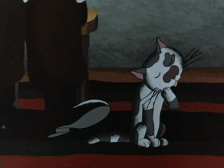 В начале был прикольнее момент, когда кошка пила молоко и подглядывала глазом, который закрашен.