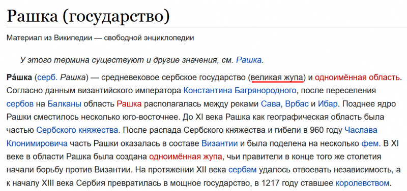 Хочу немного уточнить. Сербская Рашка - это не слово женского рода, как нам кажется; если это слово переводить на русский, то будет Рашская область (точнее, Расская) со столицей в городе Рас.