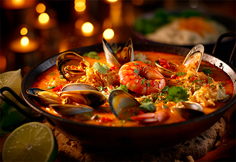 Многие известные блюда - те, которые готовят в дорогих ресторанах - начинались как еда бедняков: побросать в котел или на сковородку то, что оказалось под рукой, быстренько приготовить без особых изысков, после чего слопать - и в поле, пахать! Про паэлью в Испании рассказывают всякие легенды - дескать, ее придумали еще мавры, которые в Испании расслаблялись аж 8 веков (особенно на юге страны), а мавры, как известно, очень любят рис. Они его стали выращивать в Испании, а где рис - там и паэлья, правильно? Также ходит легенда (предельно недостоверная) о том, что само слово паэлья происходит от арабского слова "baquiyah", означающего "остатки": мол, вороватые слуги собирались то, что оставалось на столах богатых мавров, а потом из остатков еды и риса мастерили отдельное блюдо. Правда, не очень понятно, как "бакийя" трансформировалась в "паэлью": с тем же успехом можно сказать, что "паэлья" произошла от слова "шифоньер".