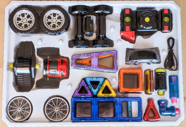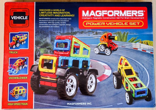 Недавно к нам приехал очередной комплект под названием Magformers Power Vehicle Set. Он в основном предназначен для создания различных транспортных средств: тракторов, грейдеров, поездов и так далее.