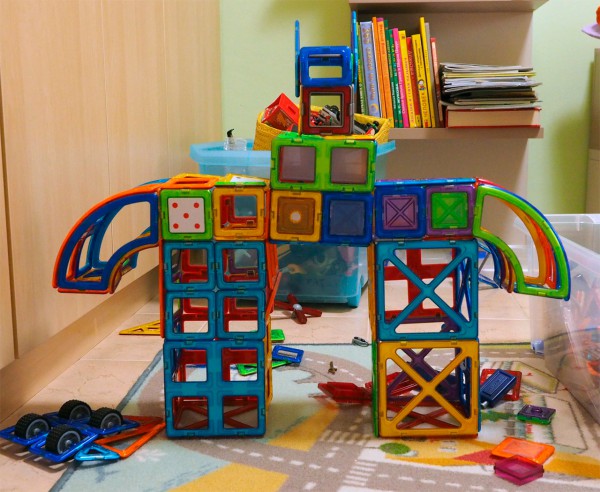 Я уже несколько раз писал о развивающем детском конструкторе Magformers: производитель как-то прислал один из конструкторов на пробу моему ребенку, ребенок от Magformers пришел в восторг и как начал строить из него различные конструкции и механизмы четыре года назад, так до сих пор это занятие и не прекращает: не бывает недели, чтобы он не построил какой-то очередное сложное строение или хитрую машинку.
