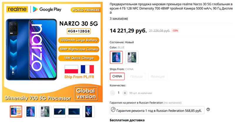 А сейчас Realme запускает мировую продажу глобальной версии новой модели Realme Narzo 30 5G за 14 тысяч рублей. По характеристикам смартфон вроде один в один новый Poco M3 Pro 5G, который у меня сейчас на тесте.