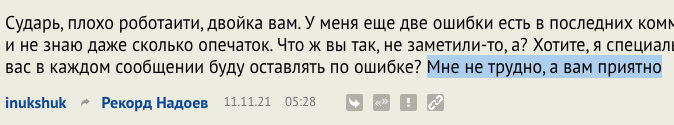 А с чего вы взяли, что мне приятно читать тексты с ошибками? Я этого нигде не утверждал. Сами придумали, сами поверили.
