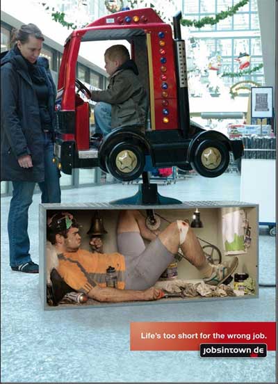 здесь еще парочка креатур от jobsintown, которые выиграли массу рекламныx премий под девизом (вольный перевод) "жизнь слишком коротка, чтобы ее тратить на нелюбимую работу":