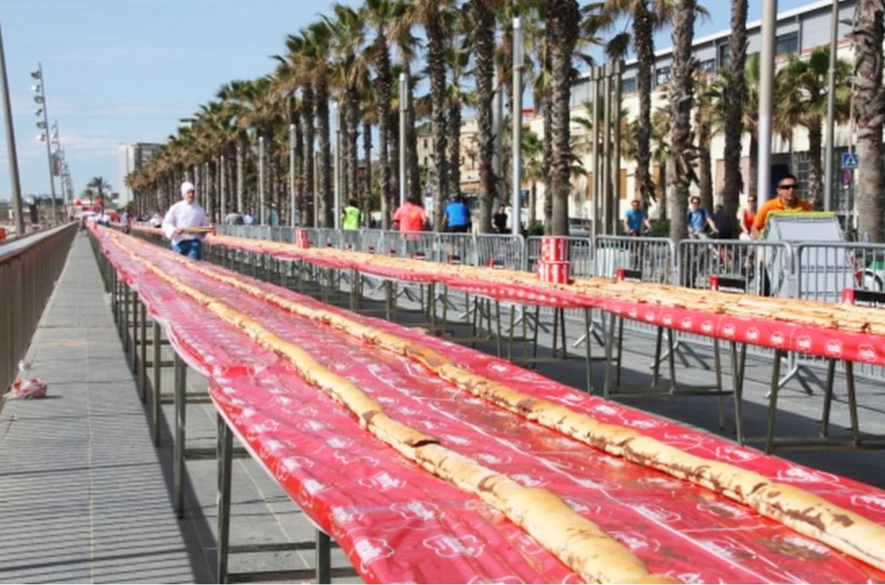 Ну и так как это важный ритуал, валенсийцы решили установить рекорд Гиннесса по esmorzaret. Спонсорами там выступили компании Mahou (популярный в Испании производитель пива, причем они выпускают с десяток различных марок) и Grupo Comboi (им принадлежит несколько крутых баров и ресторанов), также в действии поучаствовали различные рестораторы, которые для такого важного события предоставили свои особенные бутерброды с самыми разнообразными начинками.