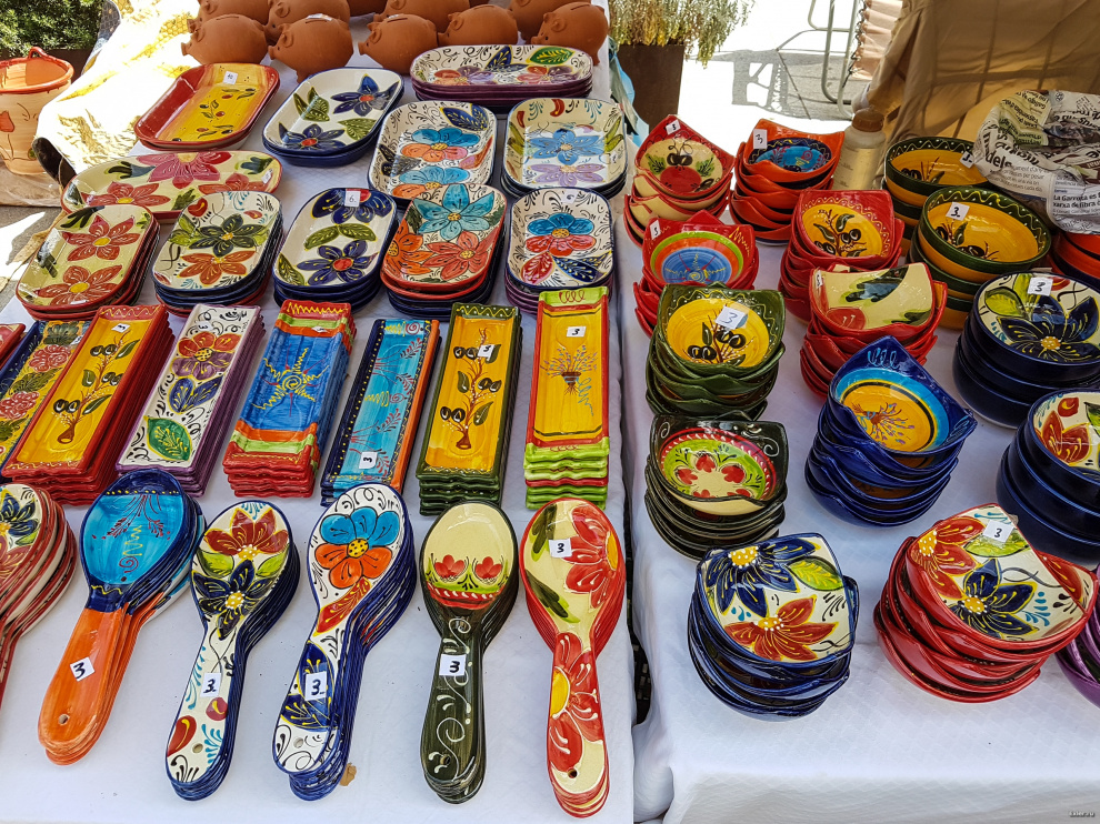 Палатка со всякой симпатичной посудой. И продавалось недорого: мы прикупили несколько больших и маленьких тарелок для сервировки на улице. Причем продавцы в палатке - мастера, которые это все делают и расписывают сами, с ними интересно было поговорить.