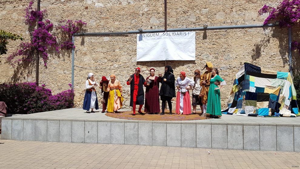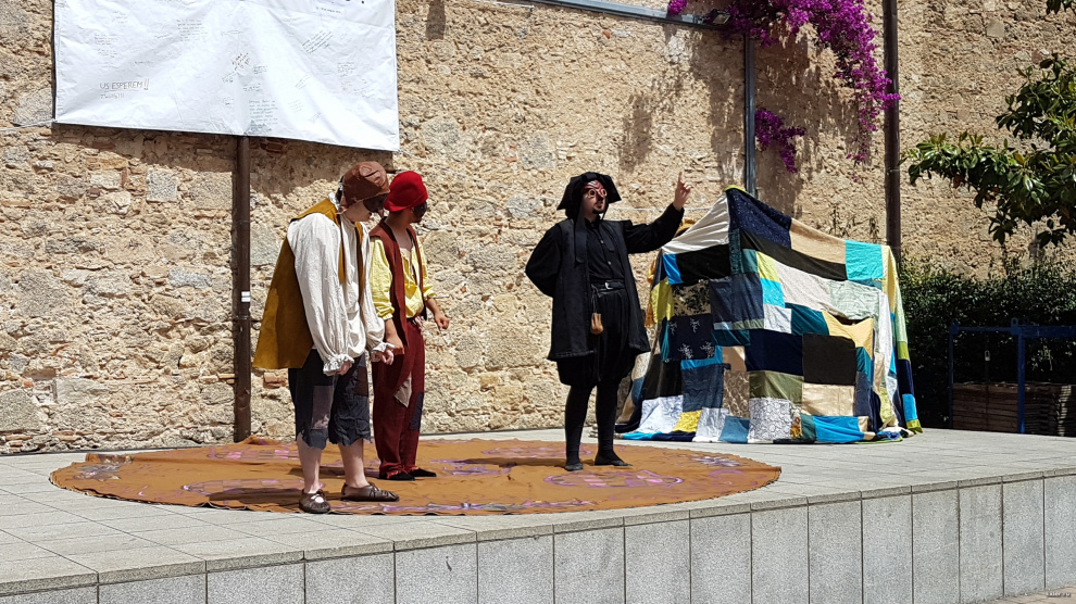 На площади появилась труппа актеров: они будут разыгрывать ренессансную комедию на сцене у церкви.