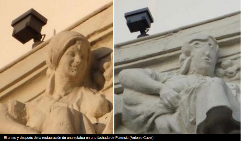 В Испании очередной скандал с реставрацией - "El ‘Ecce Homo’ de Palencia: indignación por la restauración chapuza de una estatua". В испанском городе Паленсия реставрировали скульптуры на столетнем здании. И дореставрировались вот до такого.