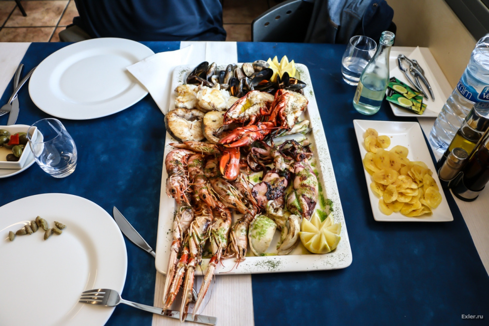 Second Shooter: Алекс, а рядом с тарелкой с морепродуктами стоит блюдо - там что? Похоже на банановые чипсы, но уж больно непривычно видеть их в таком "контексте" И еще вопрос: ты не был в ресторанчике "Bei Pepe" в том же Мальграте? Если был - какие впечатления (хочется сравнить)?