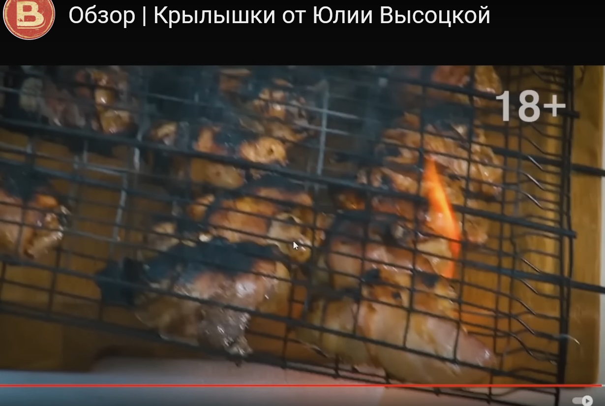 Когда крылышки с беконом окончательно сгорают, Юля произносит фразу "Снимаем с огня вот эту вот красоту", после чего демонстрирует вот эту вот красоту крупным планом.