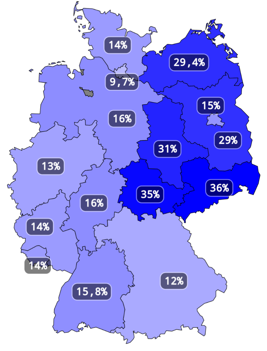 В "бывшей ГДР" традиционно много голосуют за популистов, которые обещают золотые горы и быстрое решение всех проблем. Причём что за левых ( за PDS и их наследников Die Linke) , что за правых (AfD).