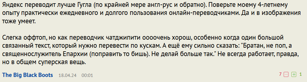 А у яндексовского переводчика автоопределение языка уже достало. Мне часто нужно перевести что-то с сербского на русский. Устанавливаю эти языки, начинаю что-то вводить по-сербски, и на полпути эти дебильные алгоритмы довольно часто вдруг решают, что раз я пишу кириллицей, то это точно русский, меняют исходный язык с сербского на русский, а целевой - с русского на какой-то рандомный. Иногда приходится нужную фразу сначала в блокноте вводить, а потом целиком копировать, чтобы это автоопределение не срабатывало.