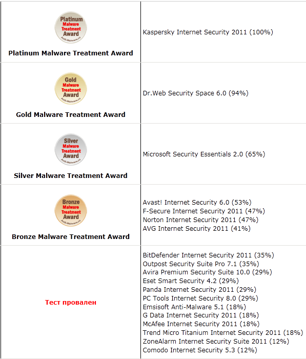 Работаю переводчиком, периодически перевожу маркетинговые материалы различных производителей антивирусов. Подобные таблицы вижу постоянно, только расположение победителей в них разное - в зависимости от того, текст какой компании перевожу.